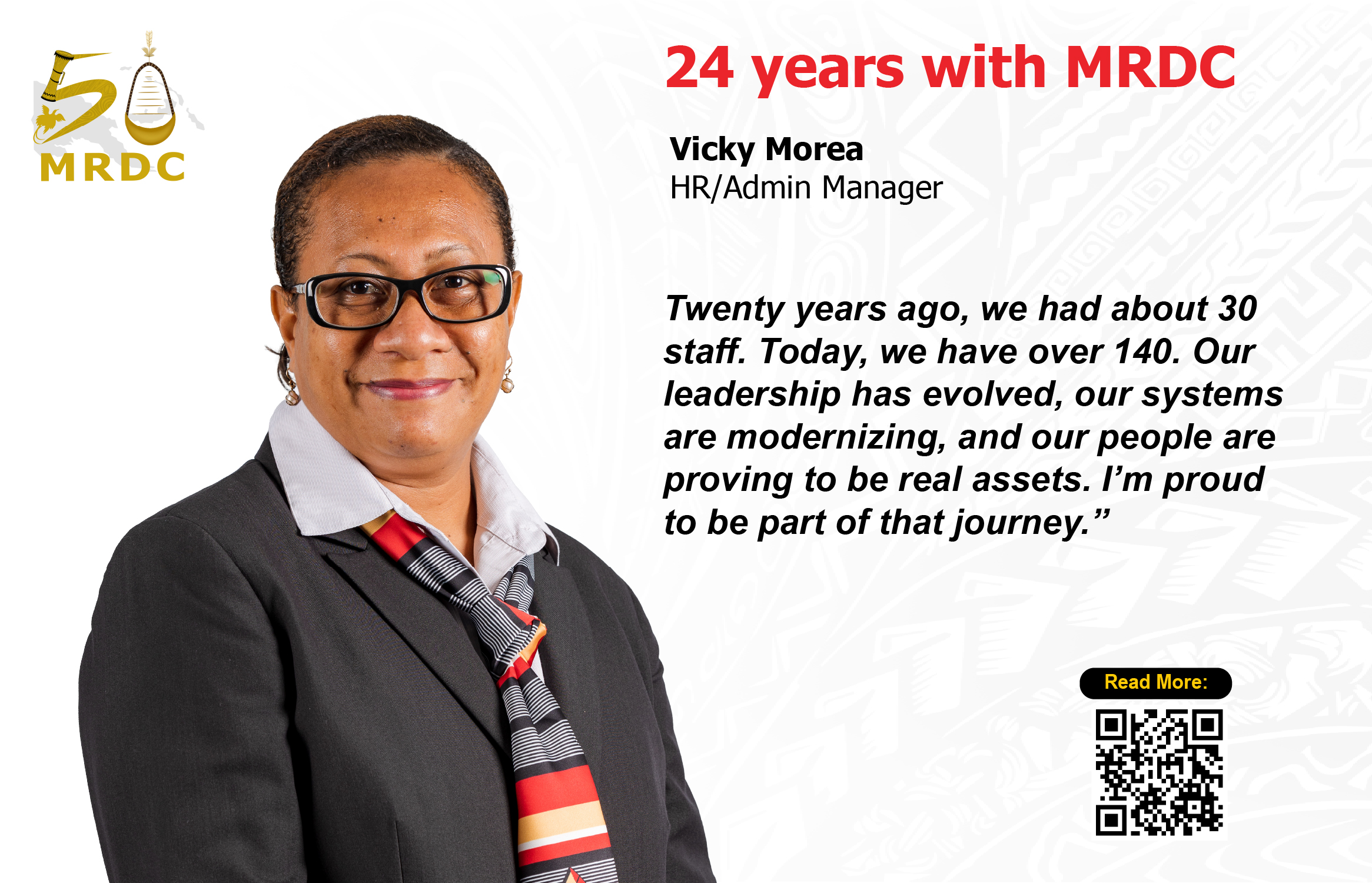 Vicky Morea, Human Resource and Administration Manager at MRDC, celebrates 24 years of service this year—a career that reflects her commitment to building the organisation’s people, systems, and culture. As one of MRDC’s longest-serving employees, Vicky’s journey mirrors the company’s transformation from a small team to a dynamic, growing management company.