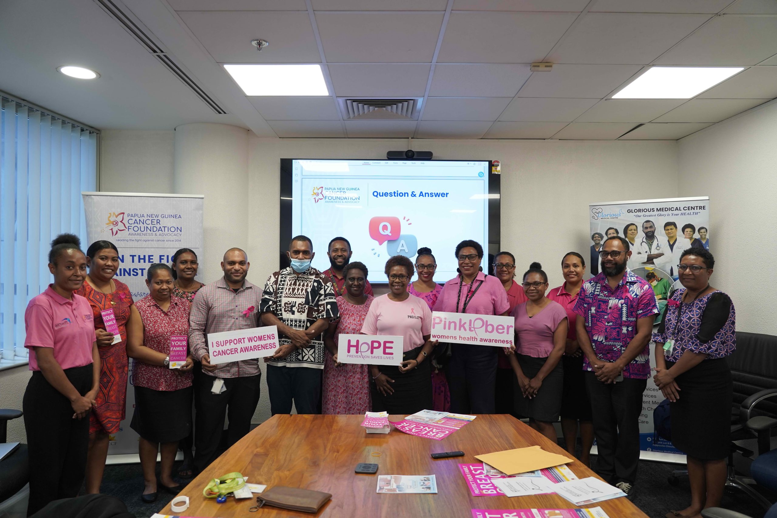 Staff from the Mineral Resources Development Company (MRDC) this week participated in a Breast Cancer awareness session organized by the Papua New Guinea Cancer Foundation (PNGCF).
