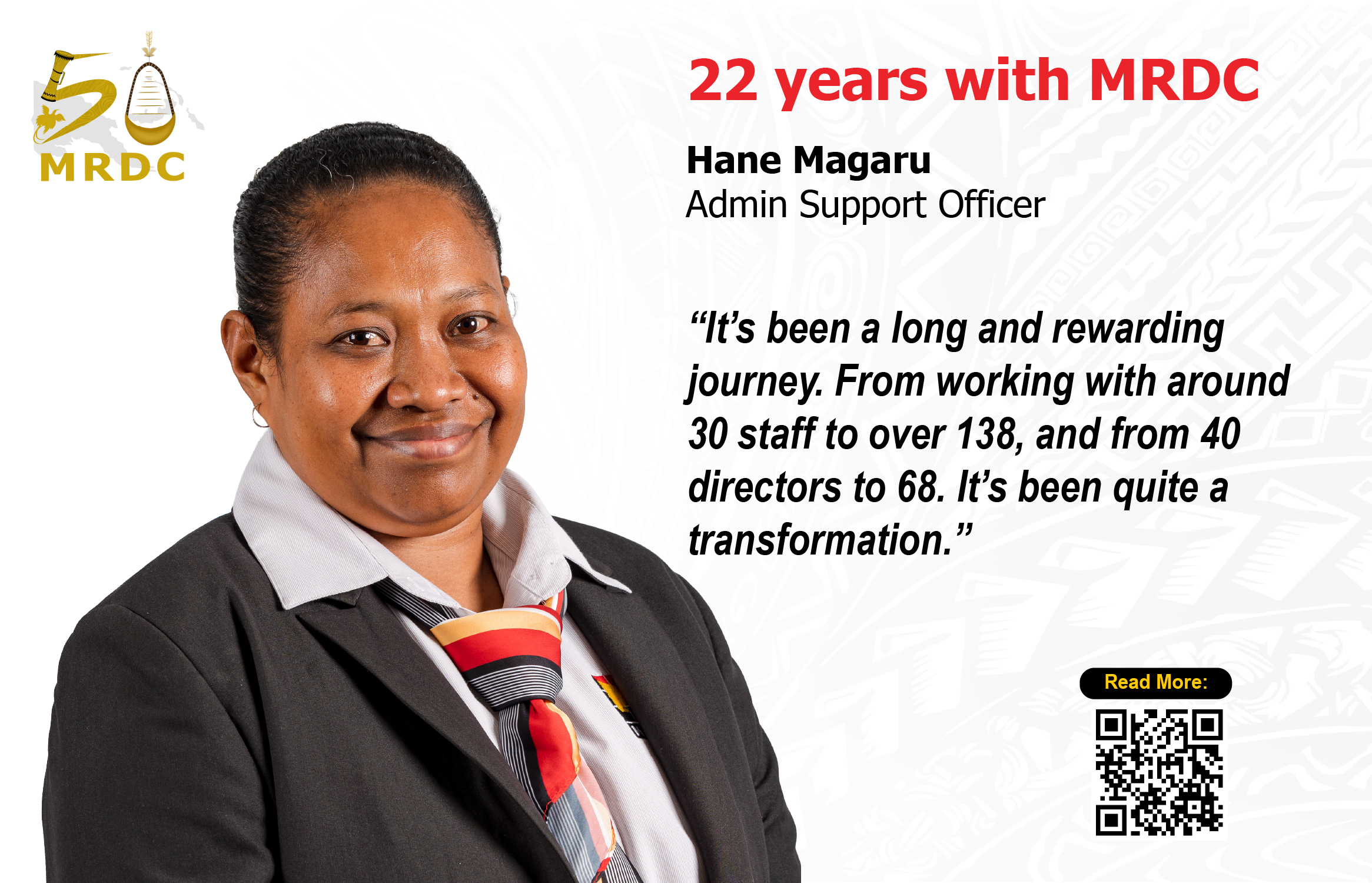When Hane Magaru joined MRDC in 2003, the company was a modest operation with just 30 staff and limited resources. Today, MRDC is a thriving organisation with over 138 employees, eight subsidiaries, and a growing investment portfolio, and Hane has been there every step of the way.